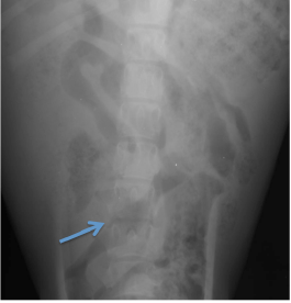 Herói, canídeo Pastor Alemão, macho inteiro de 4 meses, apresentado à consulta por prostração e dificuldade na marcha. Os proprietários reportaram relutância ao movimento associada a dor, fraqueza e prostração que vinha a agravar-se há uma semana. À palpação abdominal era notável algum desconforto. No exame fisico apresentava febre e alteração de postura compatível com dor, o que se designa de cifose. No exame neurológico o Herói apresentava-se alerta, com paraparésia e hipometria dos movimentos dos membros posteriores. À palpação revelava uma atrofia muscular pronunciada dos mesmos e dor lombar acentuada. Exibia atraso na resposta do posicionamento proprioceptivo, na reação de salto e reação extensora de ambos os MP, assim como hiporreflexia no reflexo patelar bilateral. Realizaram- se radiografias à sua coluna que revelaram alterações do contorno vertebral de das vértebras lombares L5 e L6 por erosão da placa terminal caudal de L5 e cranial de L6, sinais de esclerose ligeira das margens ventrais das mesmas vértebras, diminuição ligeira do espaço intervertebral. Tendo em conta a história e achados o diagnóstico presuntivo foi de discoespondilite que acabou por ser confirmado por TAC. O Herói esteve internado mais cinco dias com tratamento e suporte incluindo antibioterapia especifica e teve alta alguns dias depois.